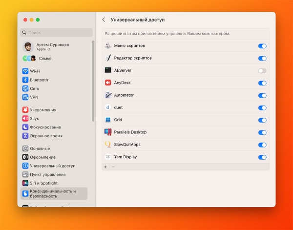 3. При первом запуске выдайте необходимые разрешения (Системные настройки — Конфиденциальность и безопасность — Универсальный доступ).
