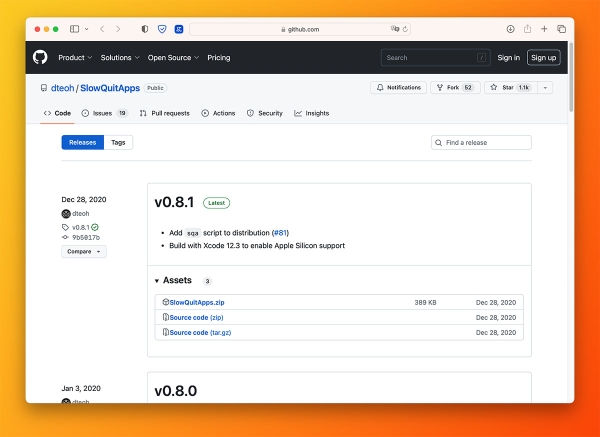 1. Загрузите бесплатное приложение Slow Quit Apps с GitHub.