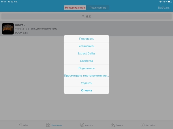 2. Когда игра в нужном формате загружена на устройство, следует определиться со способом подписи приложения.