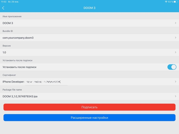 Способ тоже бесплатный, компьютер для него не требуется. Однако такие сертификаты часто отзывает Apple, приложение может перестать работать в любой момент. Придется искать новый сертификат в сети или переподписывать игру заново.