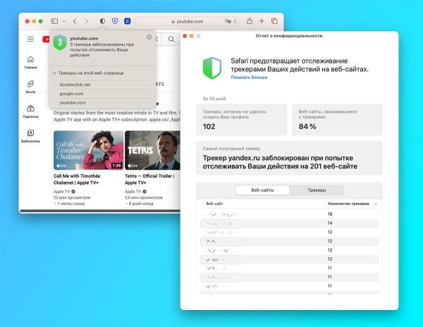 Эта фишка стандартного браузера macOS позволяет блокировать трекеры и отслеживающие скрипты во время посещения сайтов.