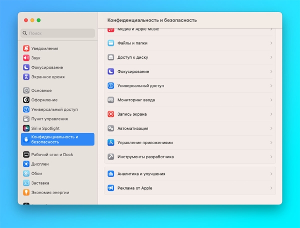 Проверить доступ к экрану и клавиатуре Mac можно в разделе Системные настройки — Конфиденциальность и безопасность — Запись экрана/Мониторинг ввода.