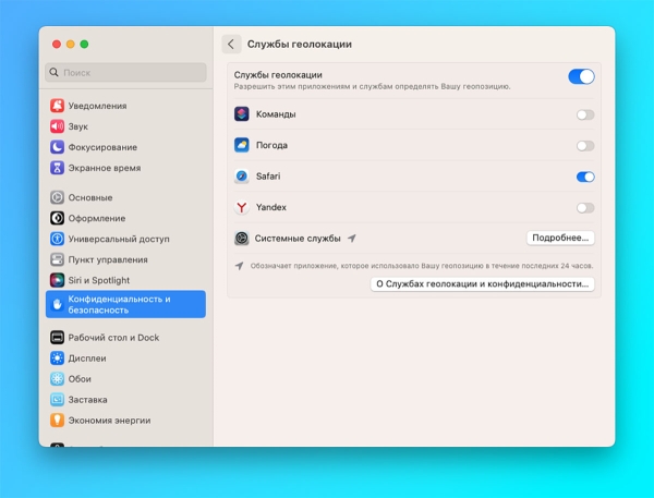Многие приложения на Mac при установке просят разрешение на отслеживание геопозиции устройства. Например, для погодных сервисов такая информация необходима, а вот большинству остальных программ эта информация не нужна.