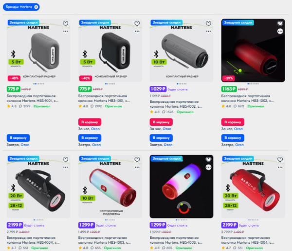 Похоже, в «Озоне» решили не плодить сущностей без нужды, и теперь выпускают под брендом Hartens всю свою электронику и бытовую технику. С октября 2022 года в продаже под этой маркой появились встраиваемые духовые шкафы и варочные панели, с ноября – беспроводные колонки.
