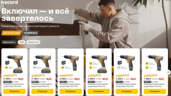 Прошлым летом вместе с Tuvio компания также анонсировала запуск бренда Vionic, однако пока что никаких товаров этой марки на площадке нет. Зато доступен широкий ассортимент электроинструментов Nocord. Как в случае с Commo и Tuvio, товары доступны только на «Яндекс.Маркете».