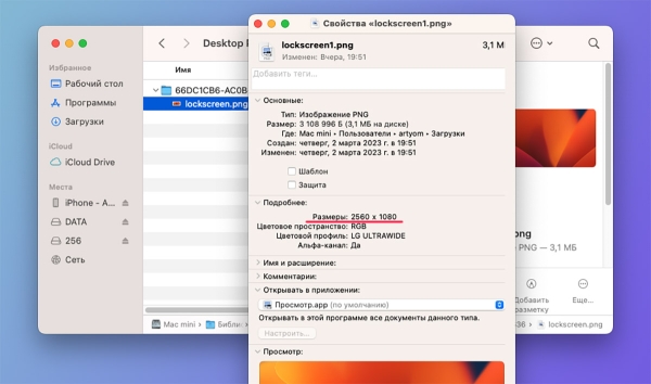 5. Откройте свойства файла через контекстное меню или сочетание клавиш Command + I. В разделе Подробнее увидите точное разрешение картинки.