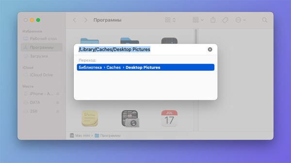 2. В открывшемся окне введите путь: /Library/Caches/Desktop Pictures и нажмите кнопку Ввод.