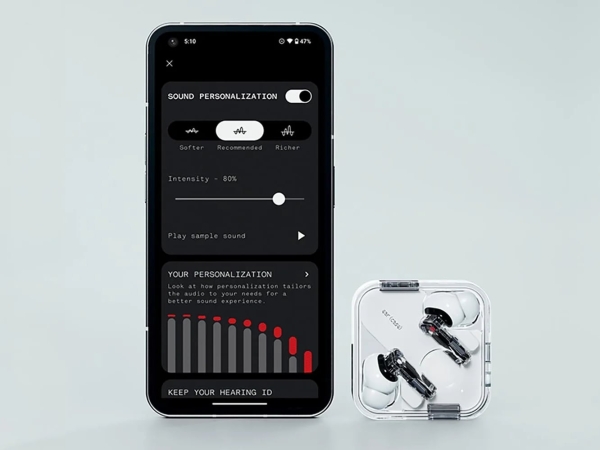 Наушники получили функцию Персональный звуковой профиль. Она позволяет откалибровать звук в соответствии со слухом пользователя. Для этого в приложении Nothing X надо будет пройти звуковой тест, чтобы наушники подобрали оптимальный профиль.