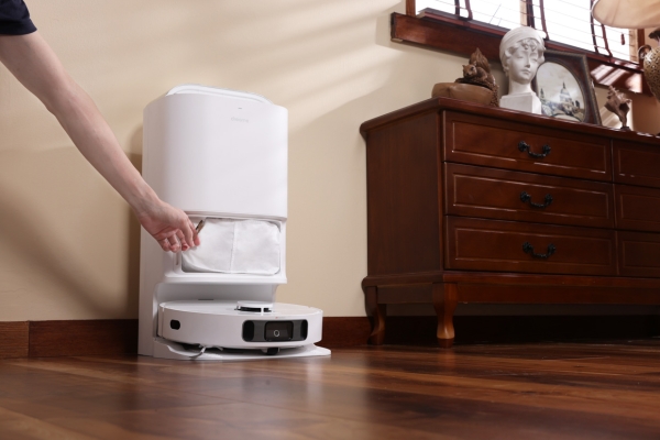 Его станция автоматически подаёт моющее средство при полоскании салфеток и контролирует, где находится чистая, а где использованная вода, отлично очищает пылесборник в пылесосе и своим большим мешком даёт на два месяца расслабиться от обслуживания.