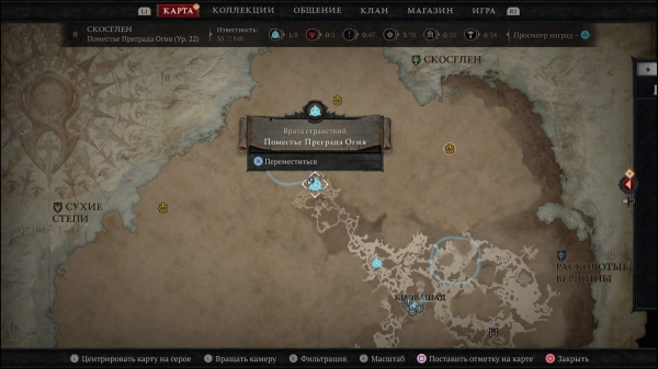 Затем после определенного уровня открываются новые события. Например, есть точки, где проходят «забеги» демонов на Санктуарий, они появляются по таймеру и отображаются на основной карте.