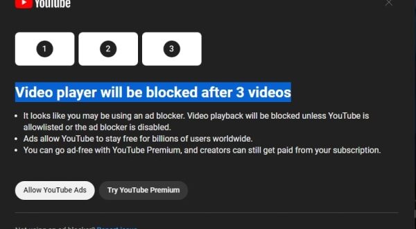 YouTube тестирует запрет просмотра видео после того, как пользователи посмотрят три ролика с блокировщиком рекламы. В этом случае окно воспроизведения становится недоступным. В тему: YouTube начал блокировать блокировщики…