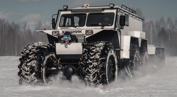 Сегодня президент России Владимир Путин впервые прибыл в Чукотский автономный округ и посетил город Анадырь. Там его встретил кортеж из автомобилей, среди которых был снегоболотоход Хищник российского производства….
