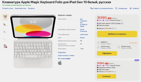 Сейчас ситуация изменилась, до нас доехали оригинальные чехлы для iPad 10-го поколения. Просят за такой аксессуар 12-13 тысяч, что примерно на 1000 руб. дороже аналогичных аксессуаров для iPad Air. Чехол для iPad за треть стоимости самого планшета это уже слишком.