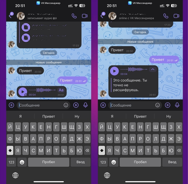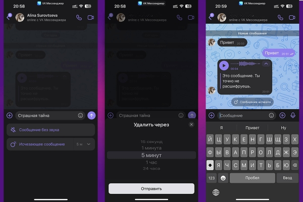 ► VK Мессенджер набирает обороты за счет многомиллионной аудитории ВКонтакте и внедрения полезных фишек без дополнительной платы. Разработчики действуют осторожно и стараются отбирать лучшие из уже проверенных на рынке решений. Так, например, в приложении можно добавлять большее количество учеток, расшифровывать аудиосообщения, передавать тяжелые данные на высоких скоростях – и все это бесплатно.