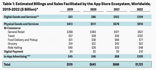 $910 млрд из этой суммы пришлось на продажи физических товаров и услуг, $109 млрд — доход от показа рекламы в приложениях и $104 млрд — продажа цифровых товаров.