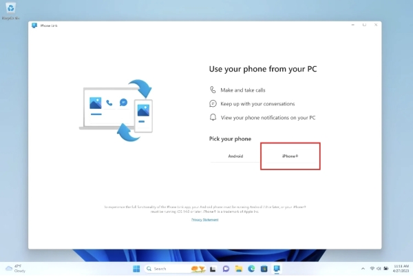 В приложении Phone Link, встроенном в Windows 11, появилась частичная синхронизация с функциями iPhone.