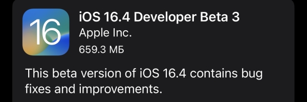 Apple выпустила третью бета-версию iOS 16.4 для авторизованных разработчиков.